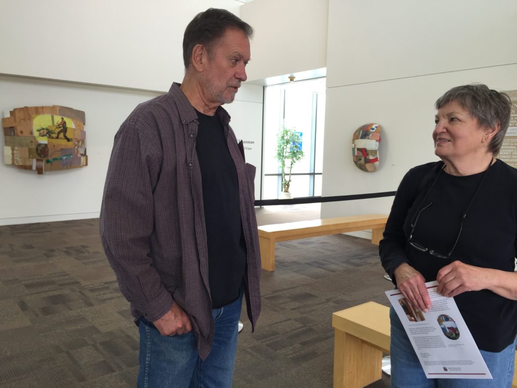 Glenn Clemmer and Paula Chung discussing Jeff’s work in the gallery, 4/21/16
