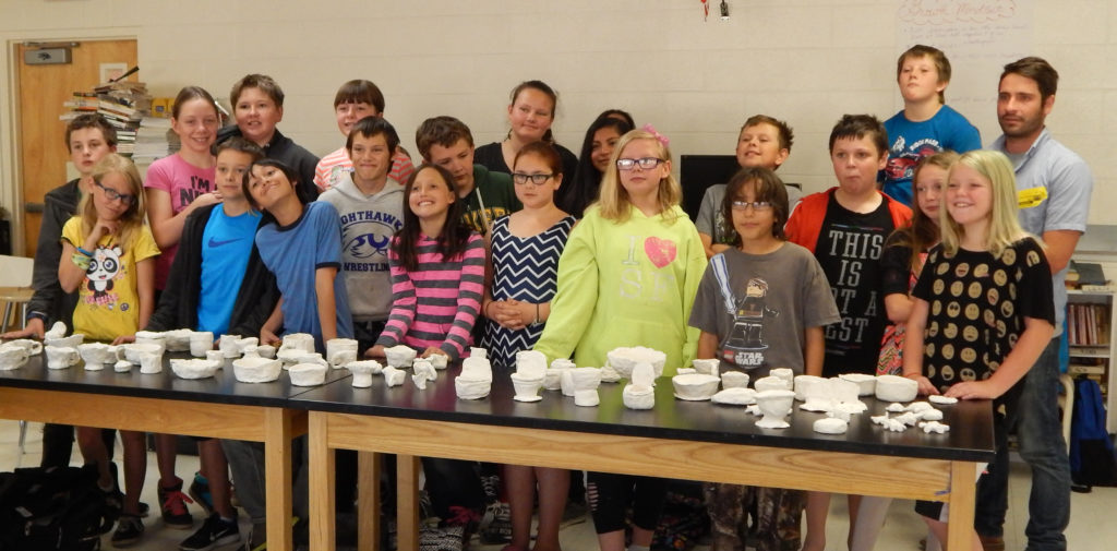 Tom Drakulich’s ceramics workshop in progress, Silver Stage Elementary, Silver Springs NV, 3/25/16; with support from UNR’s Art Department
