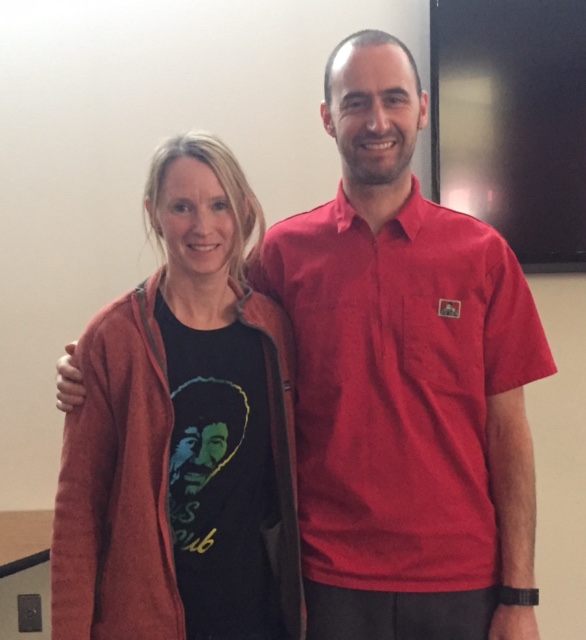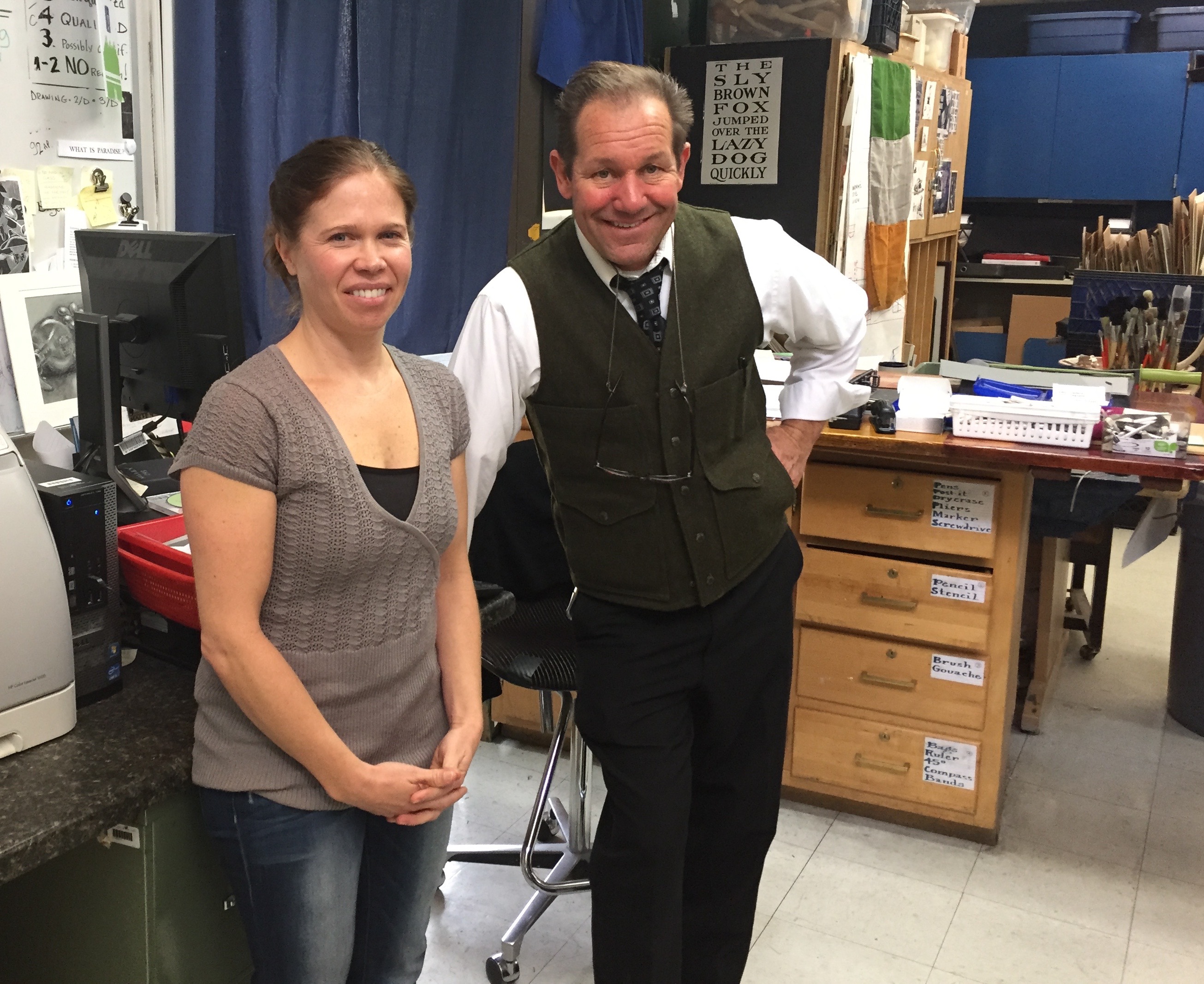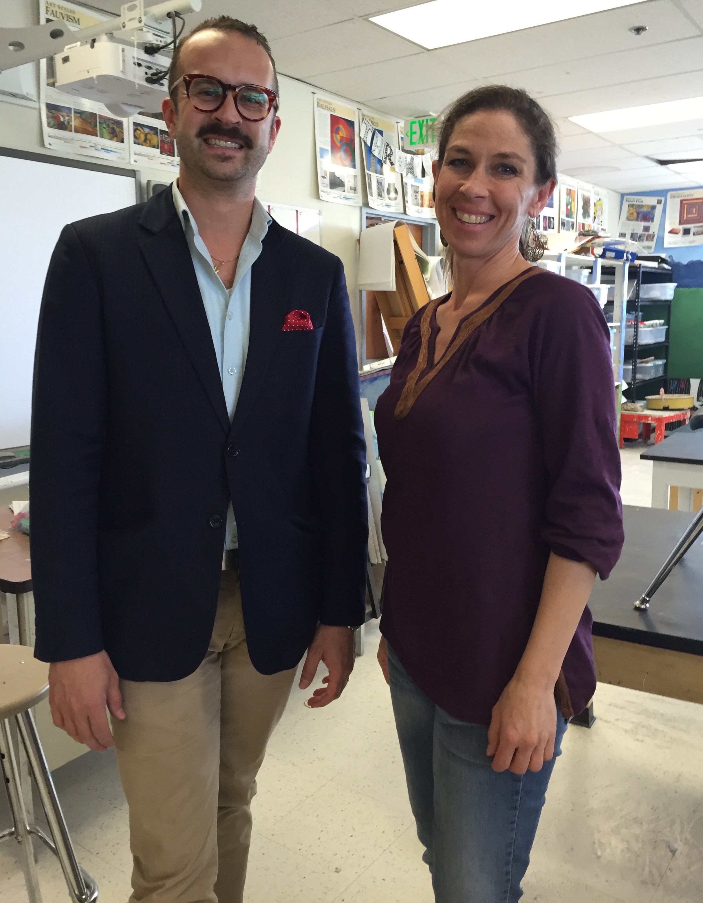 Douglas High art chair, Kelley Yost, with Jeff Hantman following his talk to 90 DHS students, Minden NV, 2/5/16