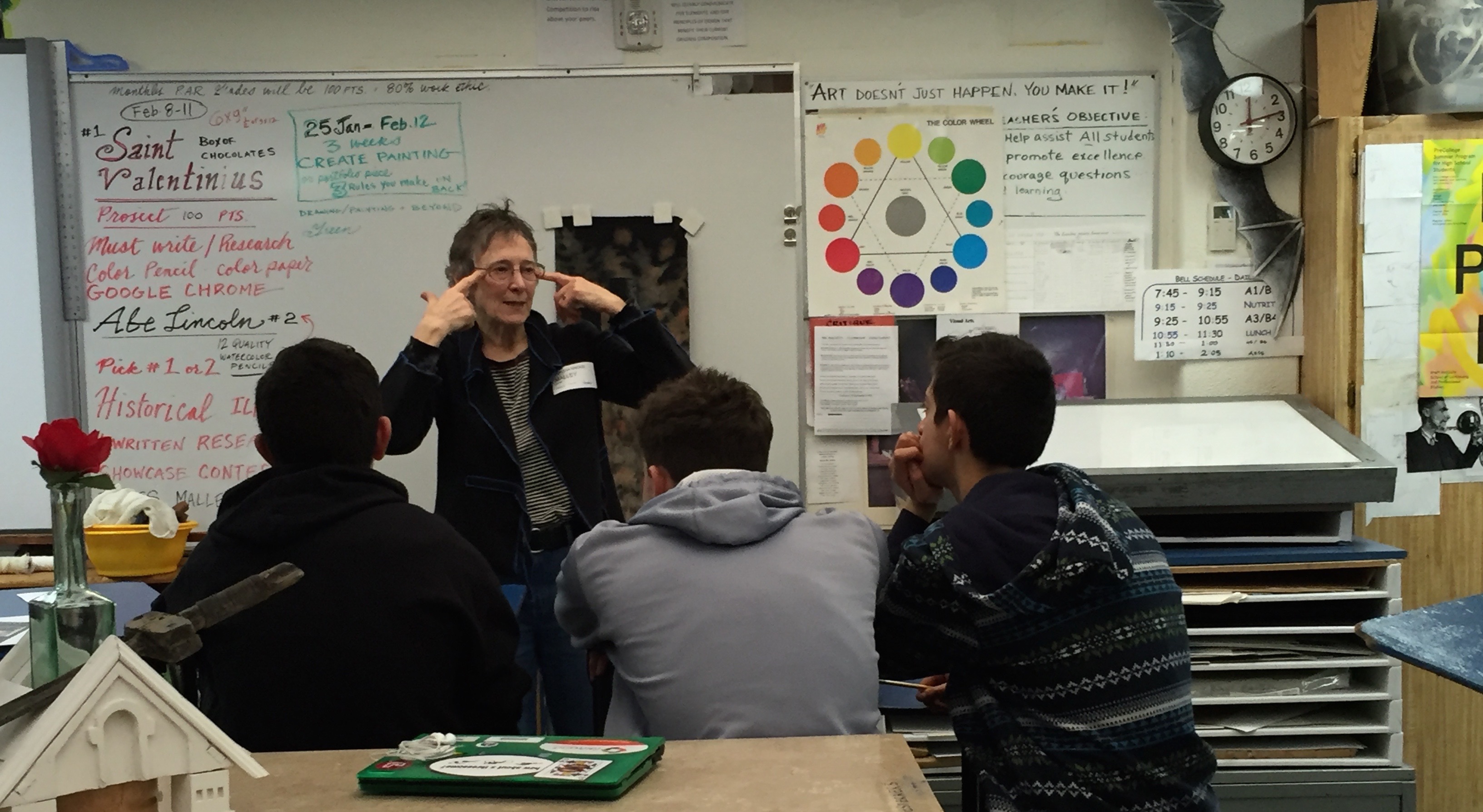 Claudia Knous talking about her art, Carson High, Carson City NV, 2/9/16
