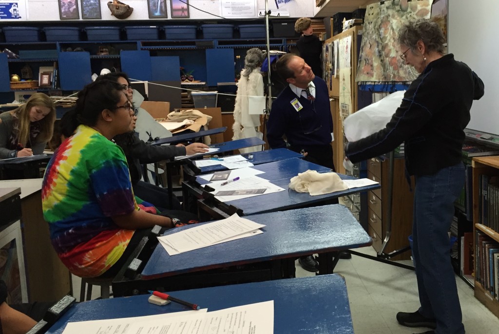 Katie Lewis talking about her art to students at Dayton High, Dayton NV, 11/10/15