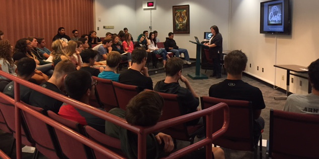 Nicole Nathan giving her talk at Douglas High, Minden NV, 9/17/15
