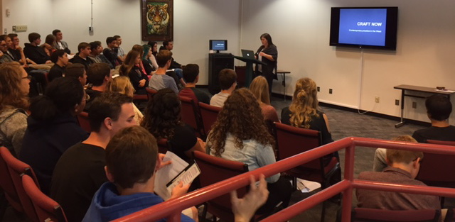 Nicole Nathan giving her Nevada Neighbors talk “Craft Now,” talk at Douglas High, Minden NV, 9/17/15