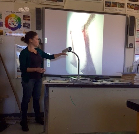 Katie Lewis talking about her art to students at Dayton High, Dayton NV, 11/10/15; with support from Healthy Communities Coalition of Lyon and Storey Counties
