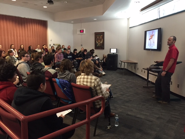 Nevada Neighbors speaker Paul Baker Prindle giving his talk to Dayton High art students, Dayton, NV, 3/24/16; with support from Healthy Communities Coalition of Lyon and Storey Counties