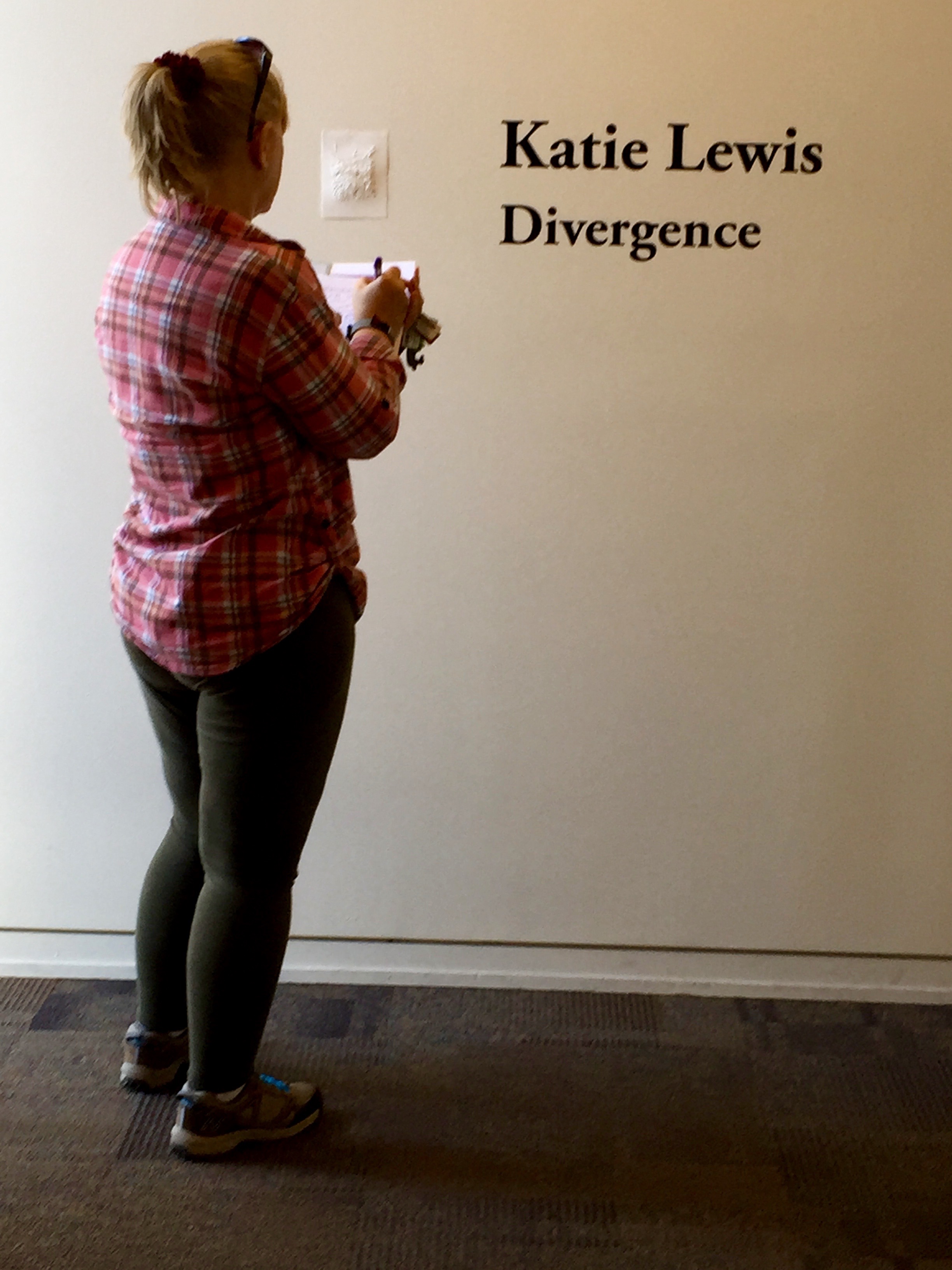 WNC student taking notes for her paper on Katie Lewis’ exhibition, CCAI Courthouse Gallery, Carson City NV, 10/6/15