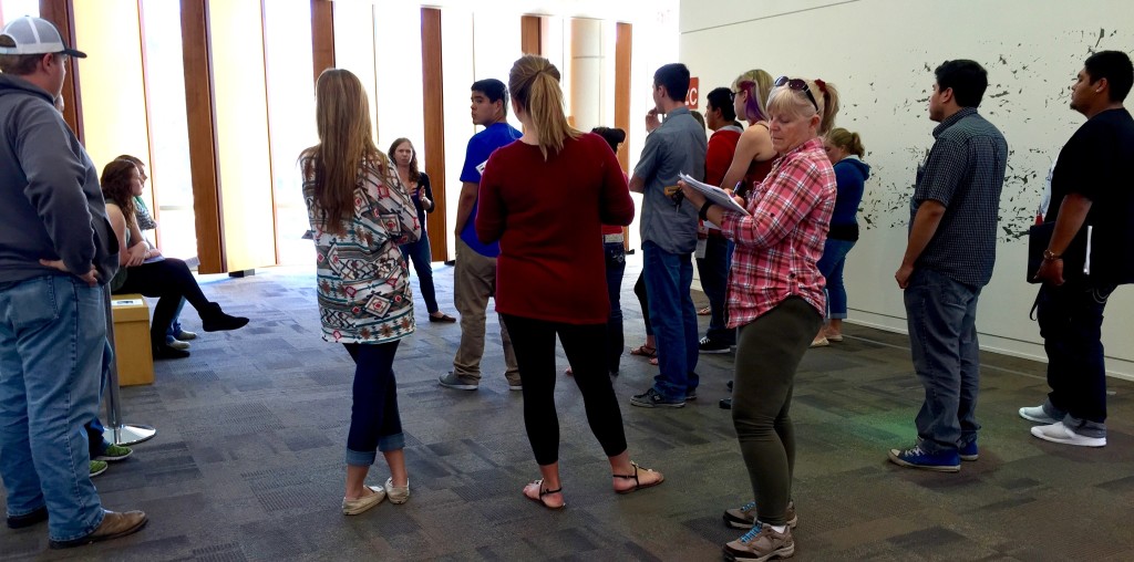WNC Visual Foundations students reading Cherie Turner’s essay on Jeff Hantman’s show, CCAI Courthouse Gallery, Carson City NV, 2/24/16