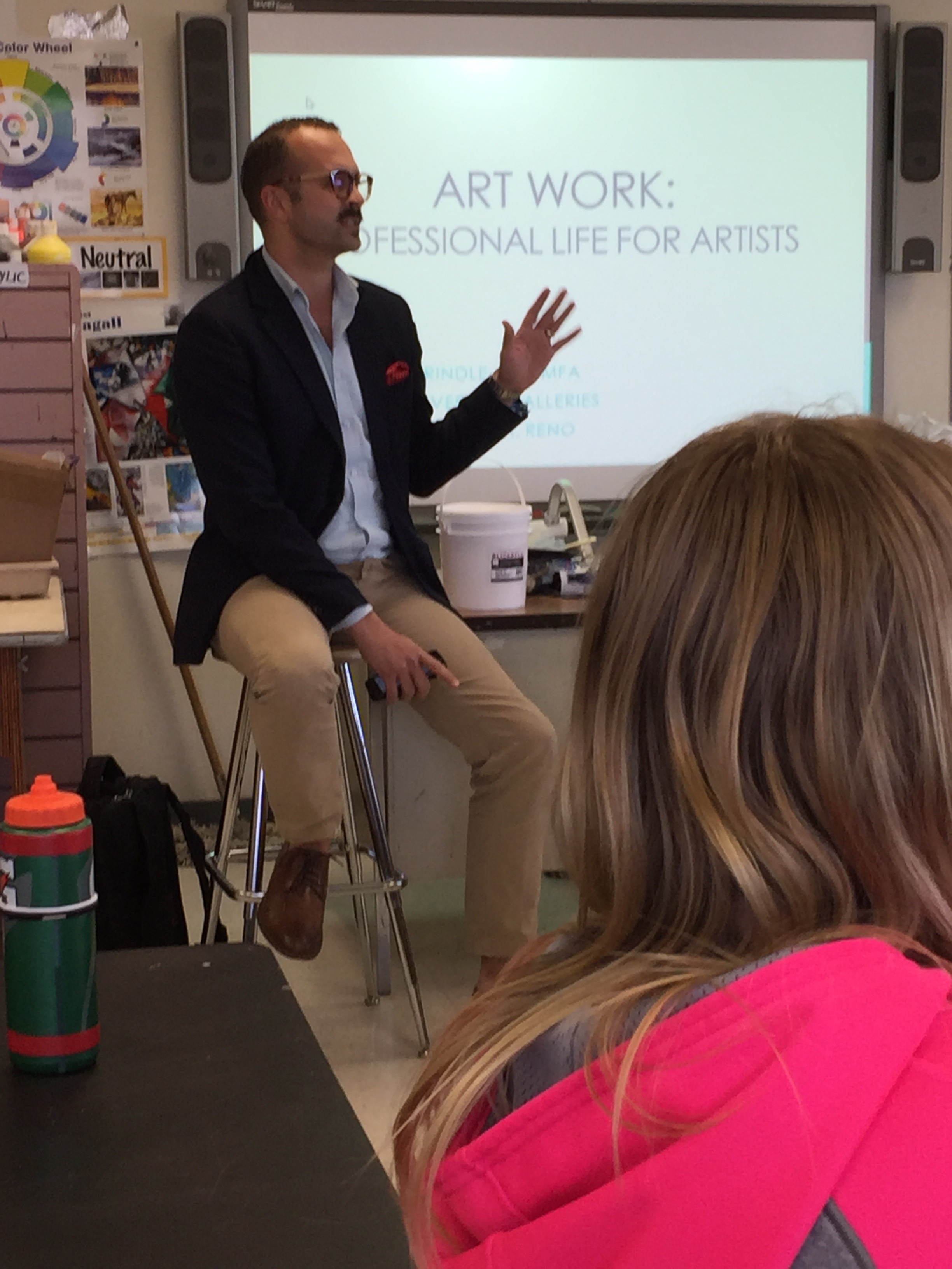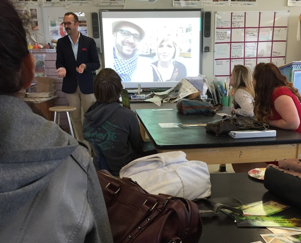 Paul Baker Prindle giving his talk to a room full of DHS art students, 4/22/16
