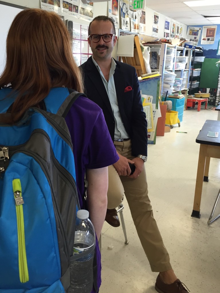 Paul Baker Prindle after his talk with Douglas High Art faculty [l-r] KC Brennan, Zoe Shorten, Kelley Yost, 4/22/16