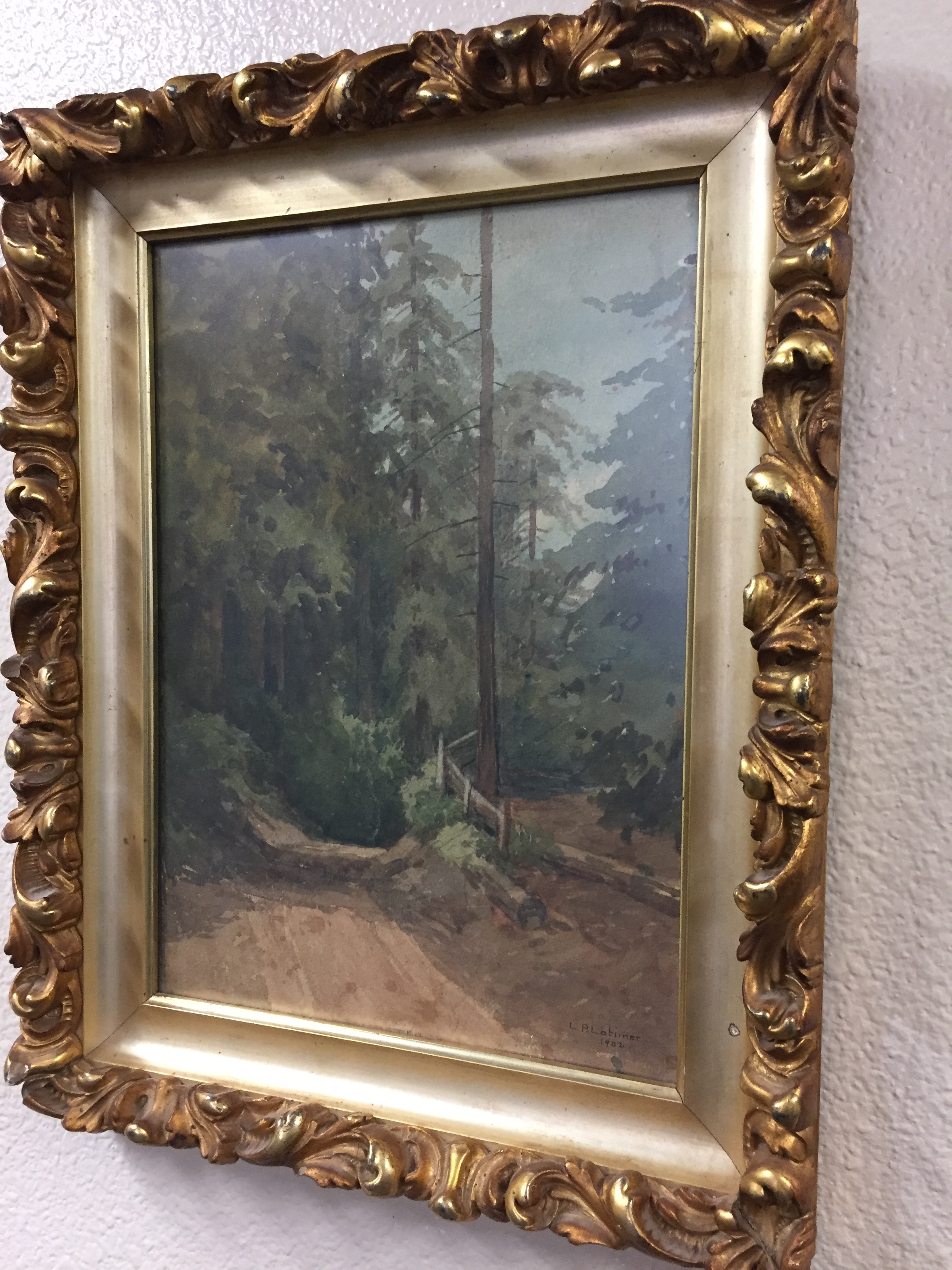 Untitled [landscape], L.P. Latimer, watercolor, 18″x16″, 1902; Joyce Newman Collection