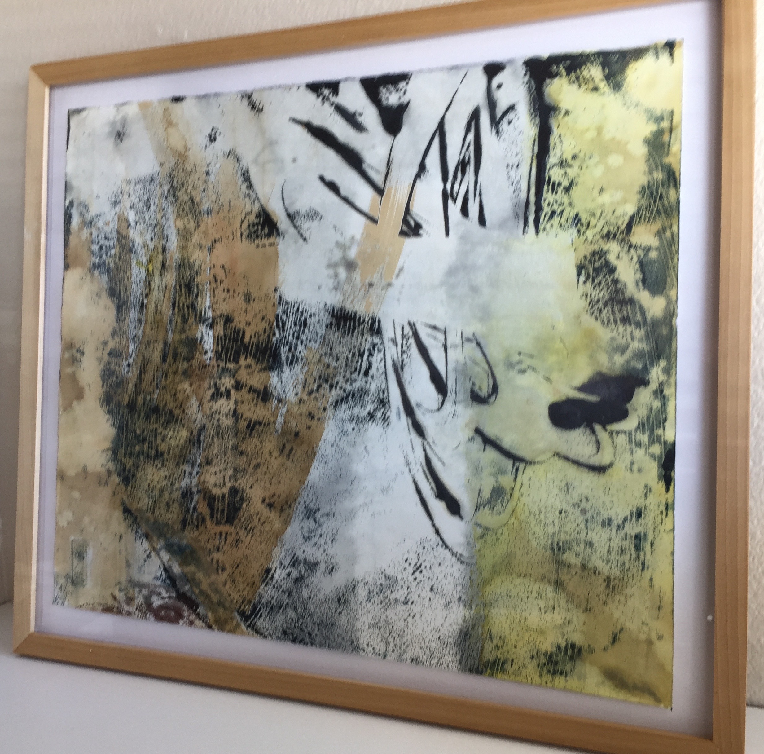 “La Giungla [Jungle]”, Amelia Currier, encaustic monotype with ink, 18″x20″, 2014
