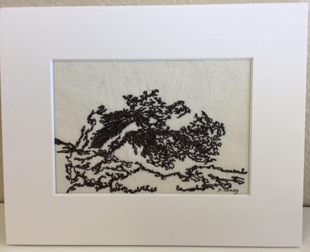 “Tree”, Paula Chung, silk embroidery on hand-dyed silk, 10″x8″, 2014