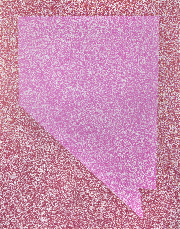 “Nevada”, Jon E Farber, print/ink on paper, 15″x12″, 2017