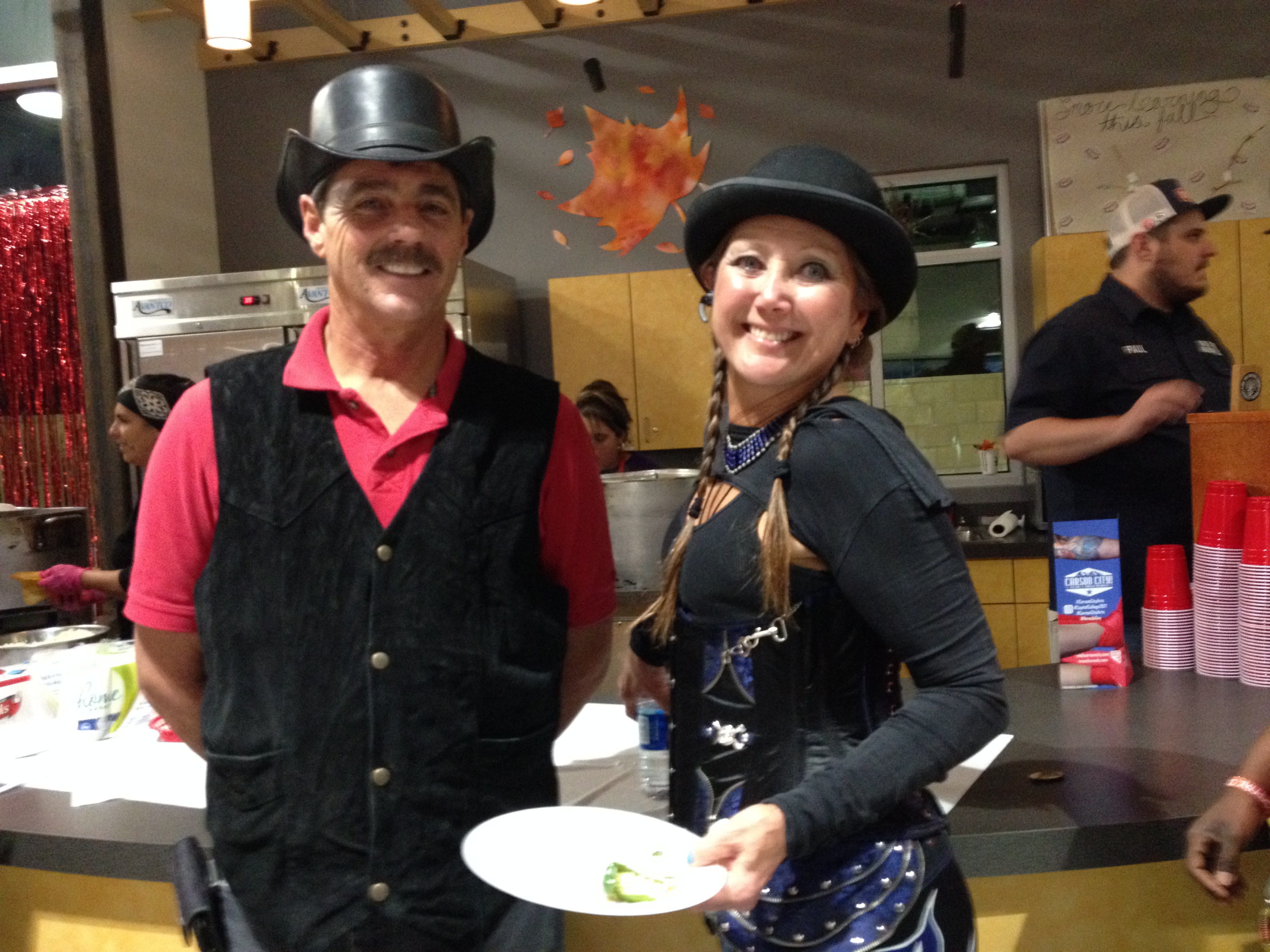 Barbara D’Anneo and Mark Salinas, wearing his pinata costume.