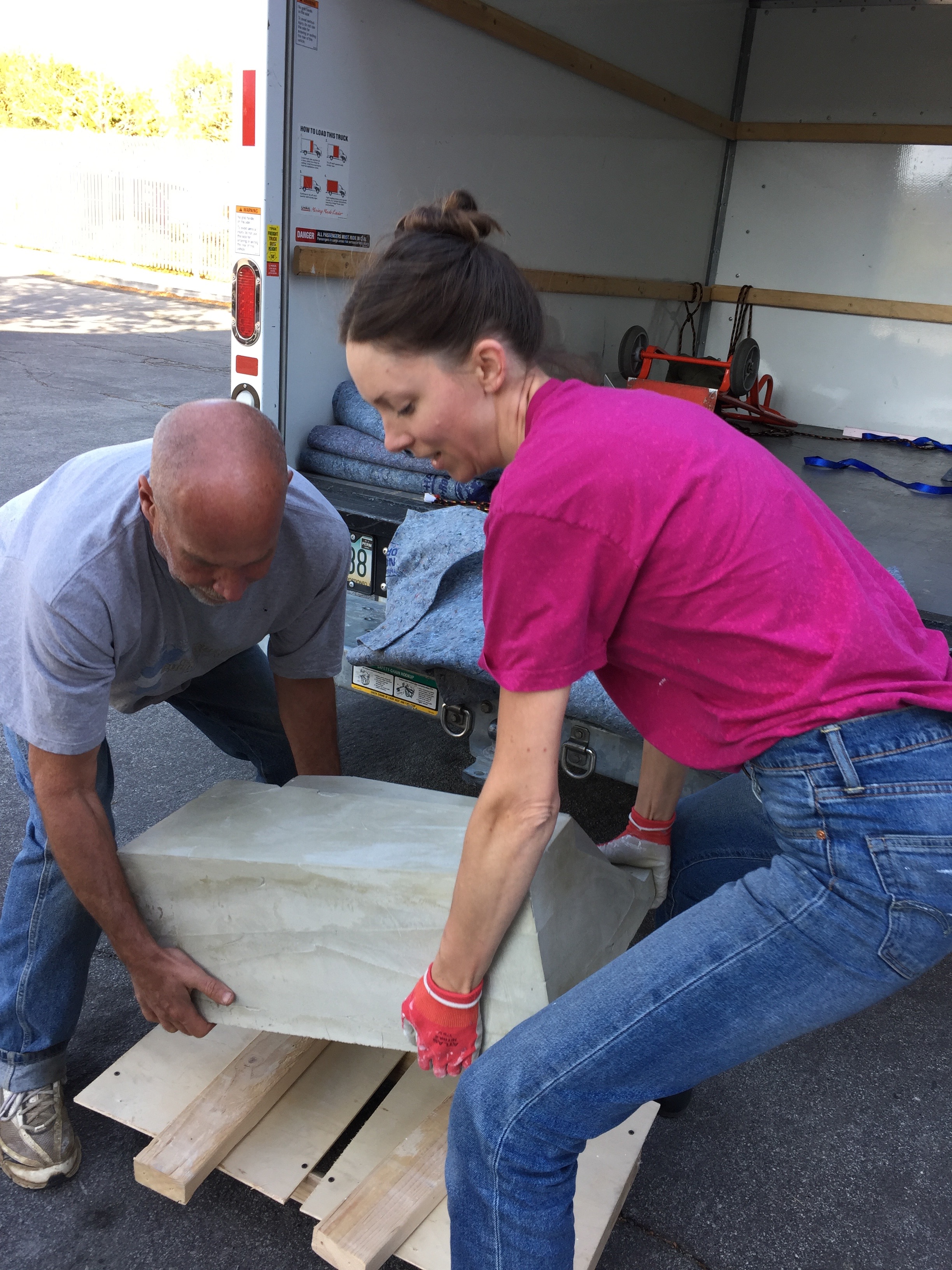 Rick and Chelsea unloading art at the gallery, 10/5/16
