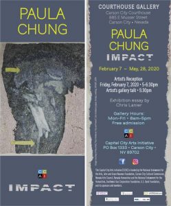 In addition to her talk at the opening reception, Chung participated in the Initiative’s Nevada Neighbors series of public art talks with Phyllis Shafer. Their in-depth conversation is online at https://youtu.be/KuO3iBlaHJI and is shared with CCAI’s partner schools’ art departments.