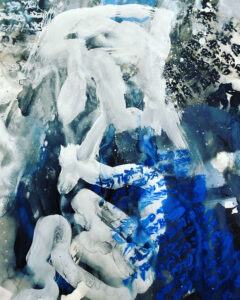 2nd image, left: Gwaylon Leaf, The Ending and the Beginning are the Same Point, 24″x48″, watercolor on panel, 2022