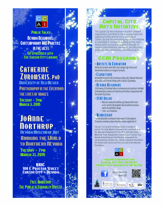As part of her CCAI visit, Ms. Northrup will give her talk to art students and faculty at Dayton High School, Douglas High School, and Sierra Nevada College.