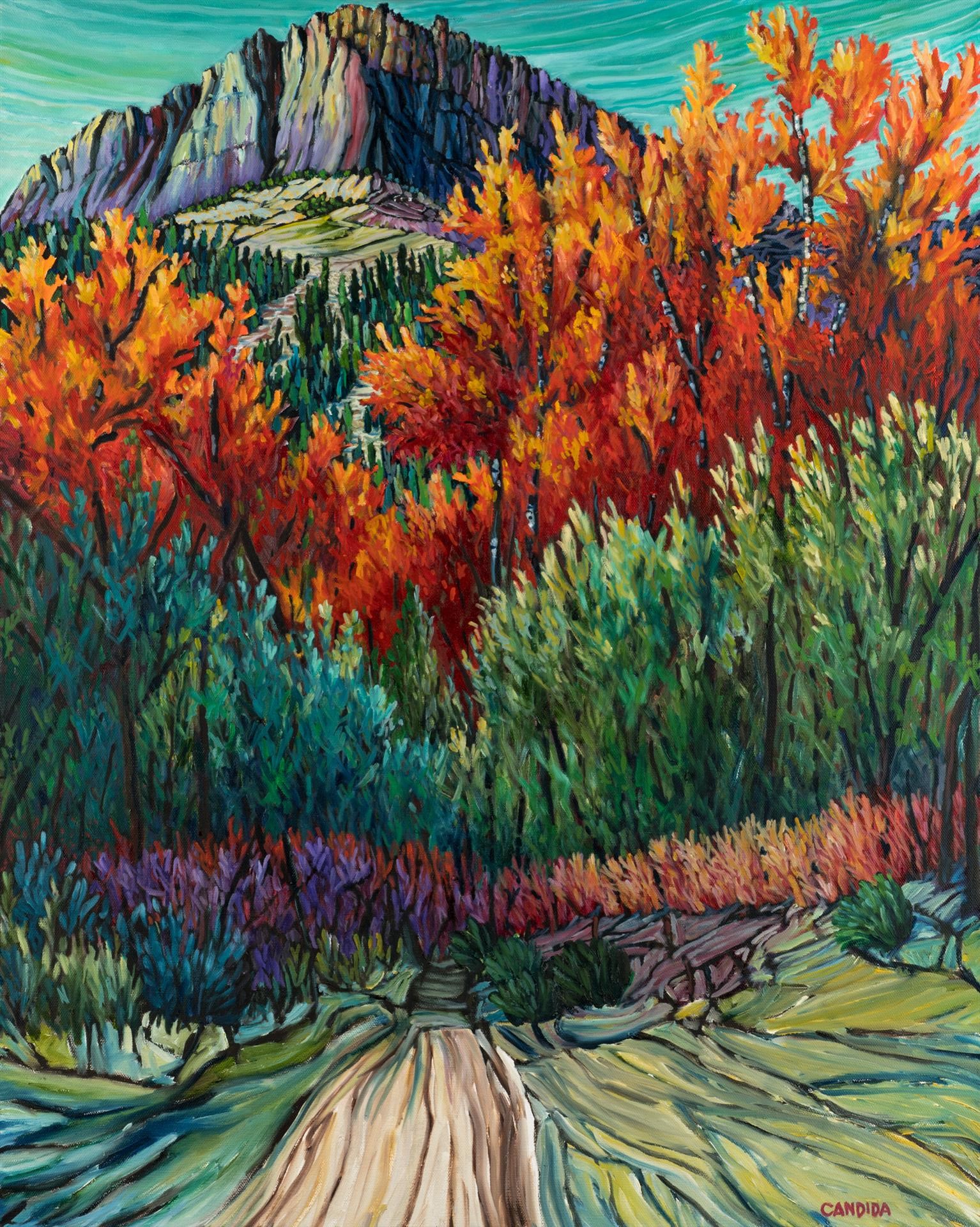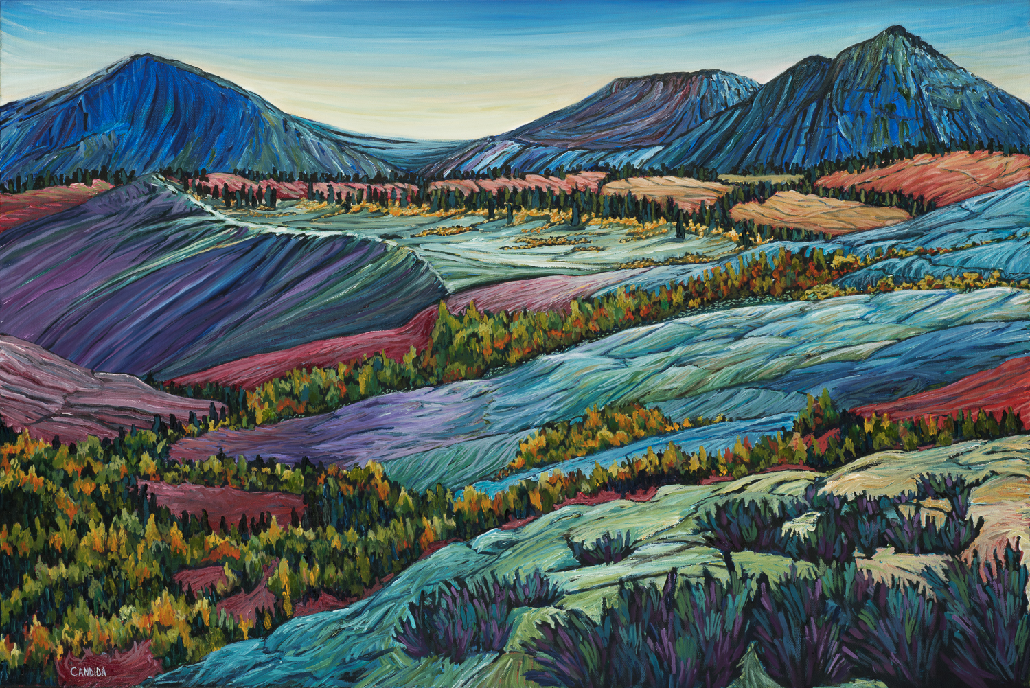 2nd image, left: Candida Webb; Demarcation, Conway Summit; oil on canvas; 24″ x 36″; 2018
