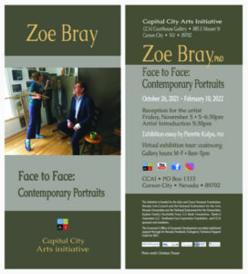 The exhibition will be in the Courthouse Gallery from October 26, 2021 – February 10, 2022. The Courthouse is located at 885 E Musser Street, Carson City. The gallery is open Monday – Friday, 8am – 5pm. CCAI will host a reception for the artist on Friday, November 5, 5 – 6:30pm; artist introduction at 5:30pm.