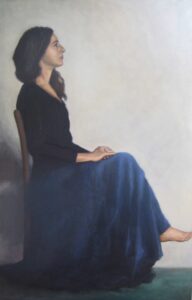 “My practice focuses on painting and drawing from life, using the traditional techniques of fine art. I specialize in naturalist portraiture and illustration. I produce life-size portraits of people, created in collaboration with them, over long periods of time. They provide the opportunity to gain a deep personal understanding of the person portrayed, and thereby transmit unique life stories. This time spent together, the person posing and me painting or drawing them, are a fundamental part of the creation of the artwork as they embody our collaboration and our place in time and space.