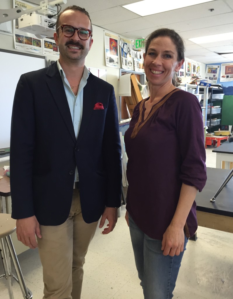After her talk, Katie Lewis with Carson High art teacher Mike Malley, Carson High, Carson City NV, 12/8/15