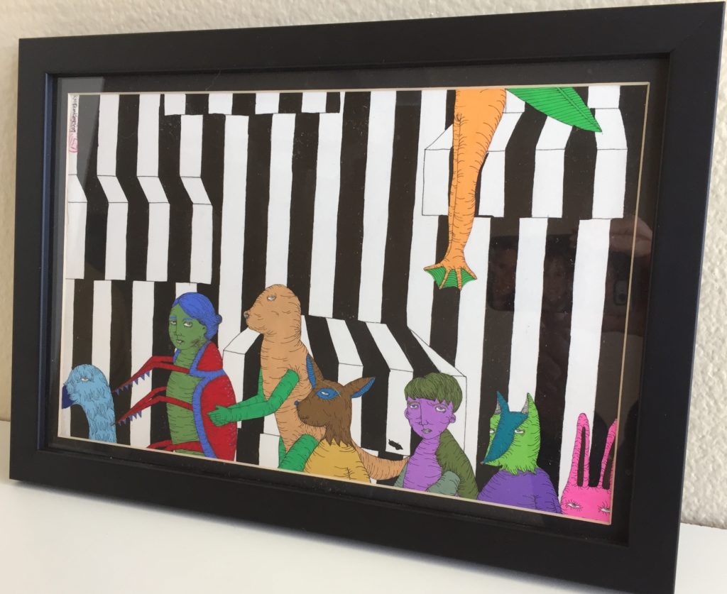 “Play Time,” Cyndy Brenneman, watercolor, pen, ink, 8.5″x8″, 2017