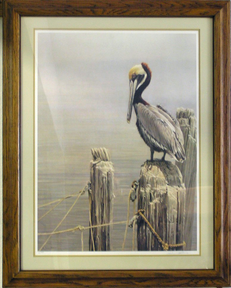 “Brown Pelican and Pilings”, Robert Bateman, print 61/950, signed, image: 29″x21″, 1979; from the Bruce Kittess Collection