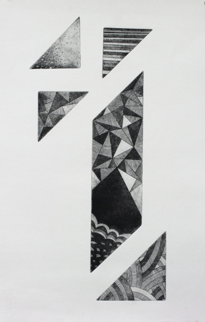 “Fragmented Memories”, Quynh Tran, etching, 20″x15″, 2014
