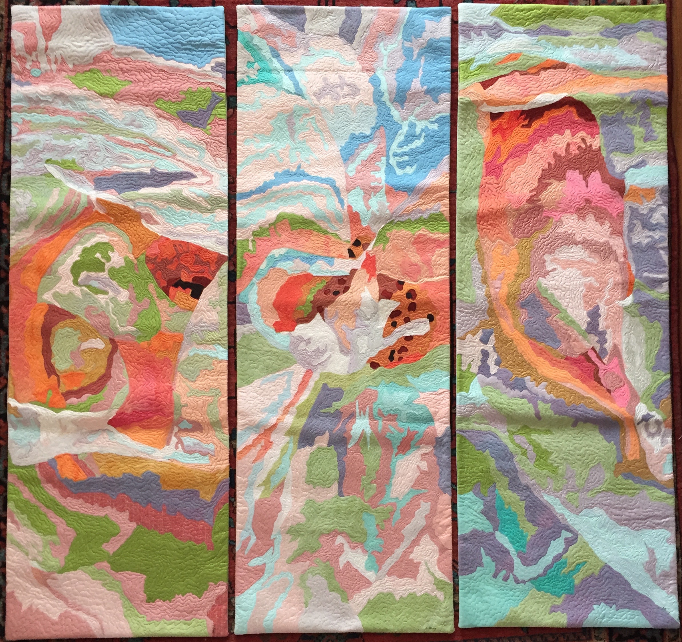 “White Rose” triptych, Paula Chung, hand-dyed silk quilted, 44″x45″, 2010