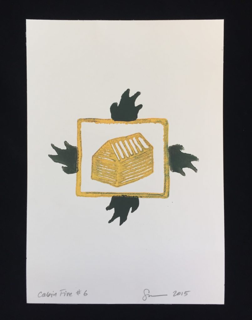 “Cabin Fire #6″, Scott MacLeod, serigraph, 10″x7”, 2015