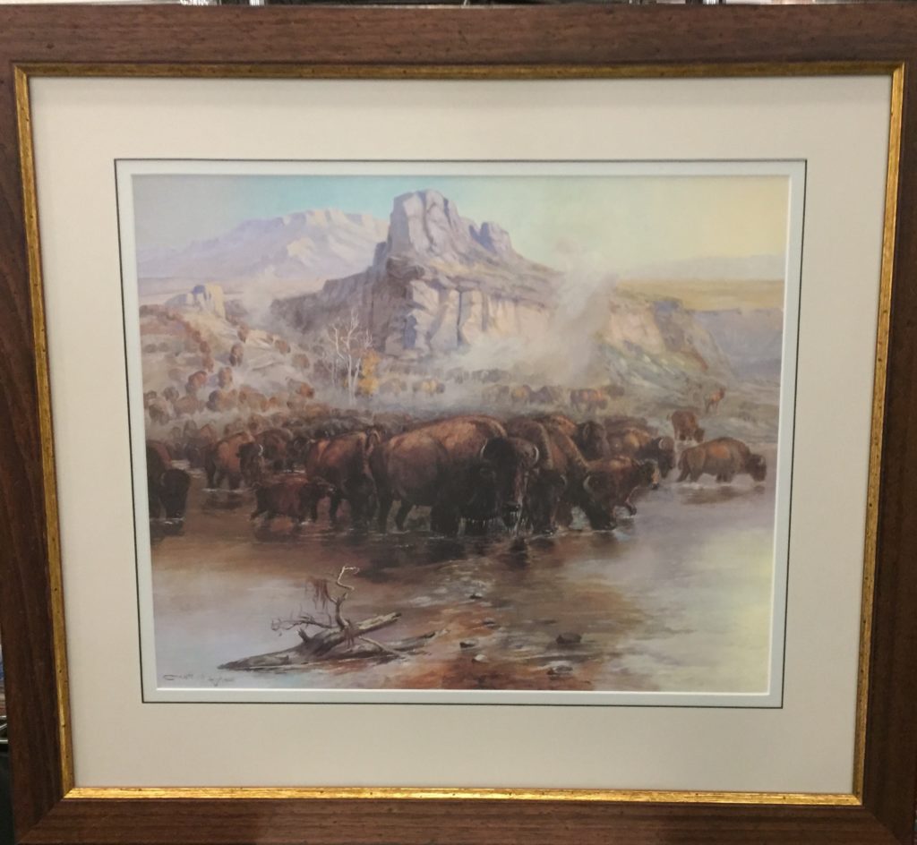 “Where Great Herds Come to Drink”, Charles Russell, print, image: 16″x19″, 1901; from the Bruce Kittess Collection