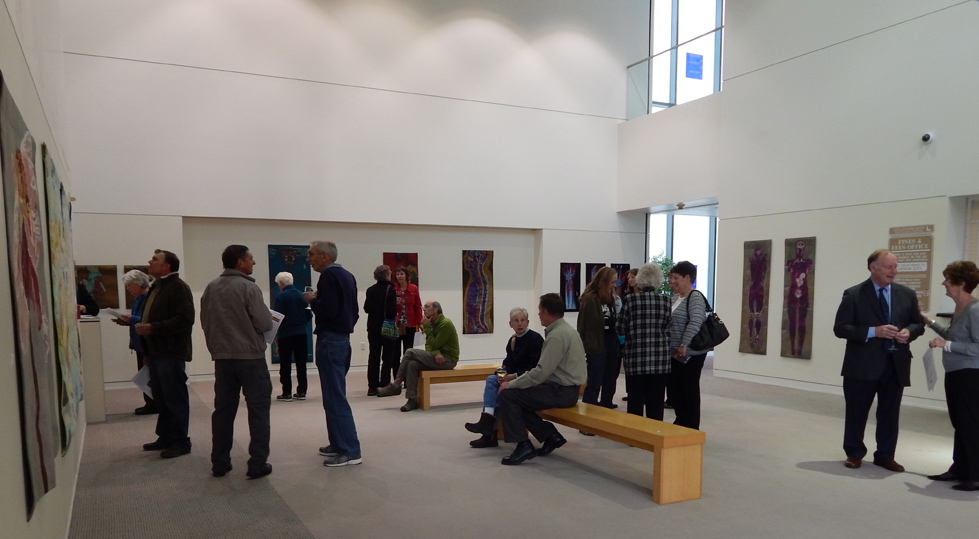 third image: Silk & Sinew reception in the CCAI Courthouse Gallery
