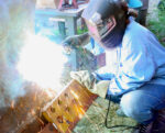 was her playground, and it was there that she developed an interest in rusted and repurposed metal. She learned to weld while helping her father repair damaged machinery during the haying seasons. She studied at the Academy of Art in San Francisco and joined the California Blacksmith Association and expanded her tools to include some metal forge work. Now that she’s living back on the ranch in eastern Nevada, found objects and fabricated metal have become the basis of most of her work with a theme of rural issues often running through her sculptures. To create her art, Church uses traditional forging, plasma cutting, and MIG welding.