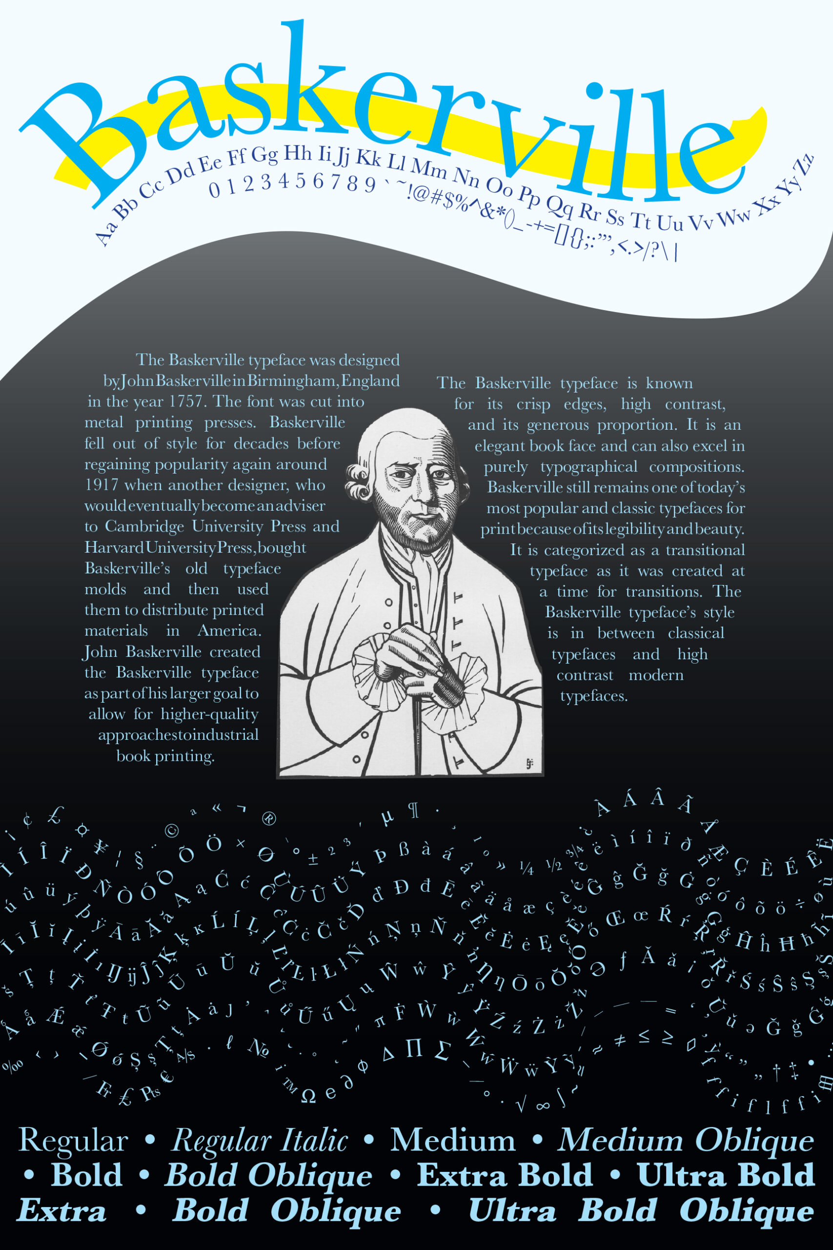 left image: Sarai Jauregui-Rivas, Baskerville, graphic design poster, 36″x 24″, 2022