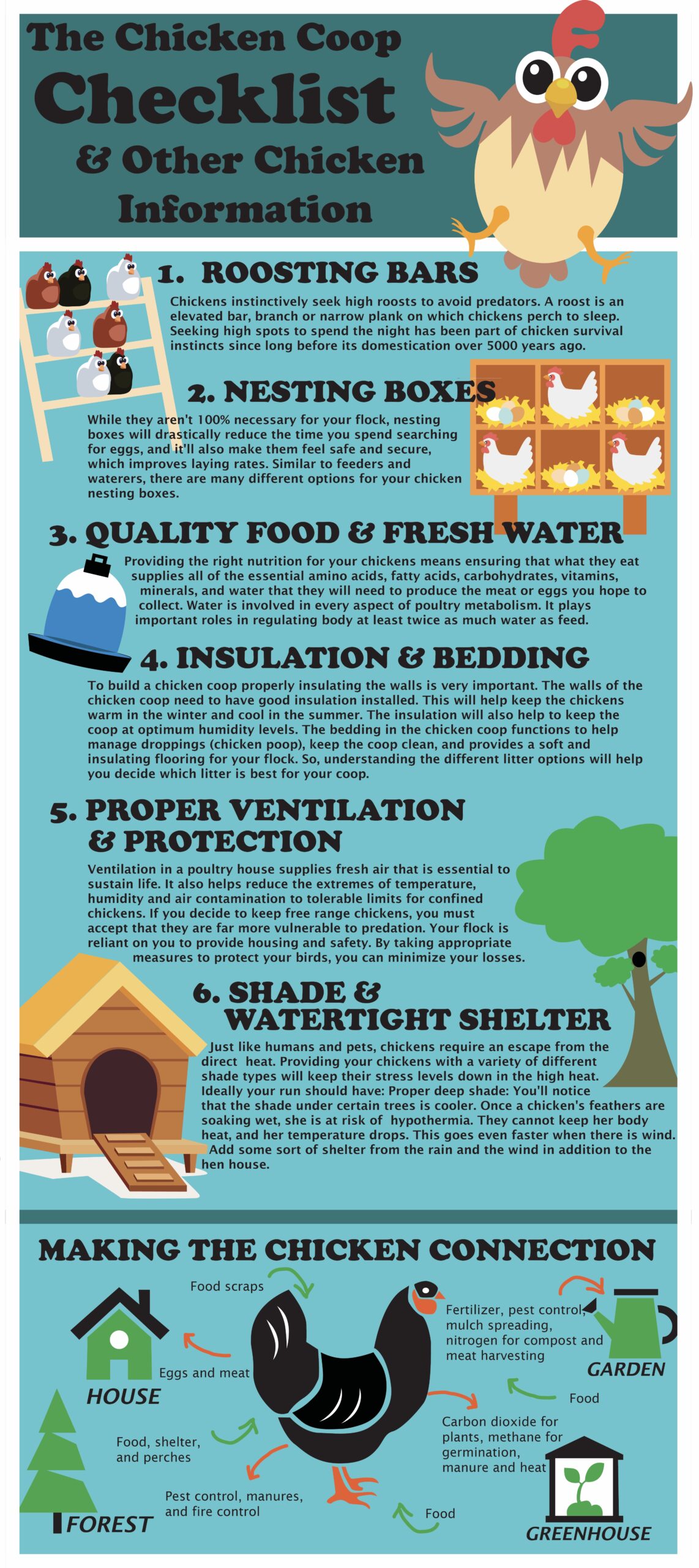 The infographic designs on Color Theory, The Origins of the Coffee Bean and the Chicken Coop Checklist were designed and drawn by students using Illustration software. Students were required to create and then draw their own graphics (they were not allowed to use clip art).