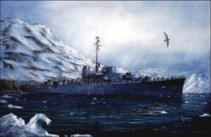 He has paintings on board numerous ships including the USS Iowa, USS New Jersey, USS Missouri, USS Wisconsin, USS Alabama, USS Massachusetts and on the USS Nevada submarine. He has work at the Naval Academy at Annapolis and at the Russian Naval Museum in St. Petersburg (of a Russian battleship). His painting of the USS Carson City was commissioned by Mayor Bob and Susan Crowell and is on board the ship; Susan christened the USS Carson City. Find more of Scarpaci’s work at http://www.artbywayne.net